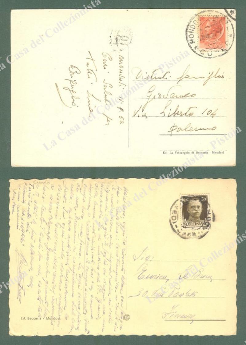 MONDOVI', Cuneo. 2 cartoline d'epoca formato grande, viaggiate nel 1937 e 1957. Abrasioni ad una. (Rif.E4007)