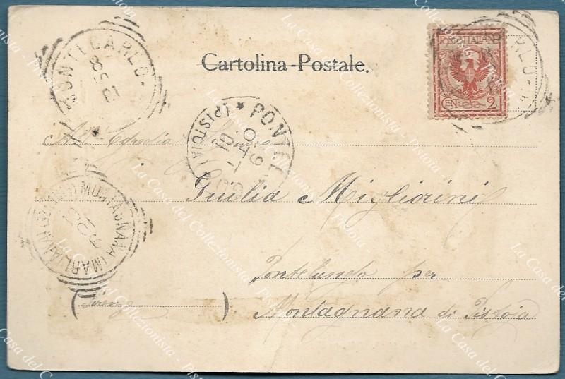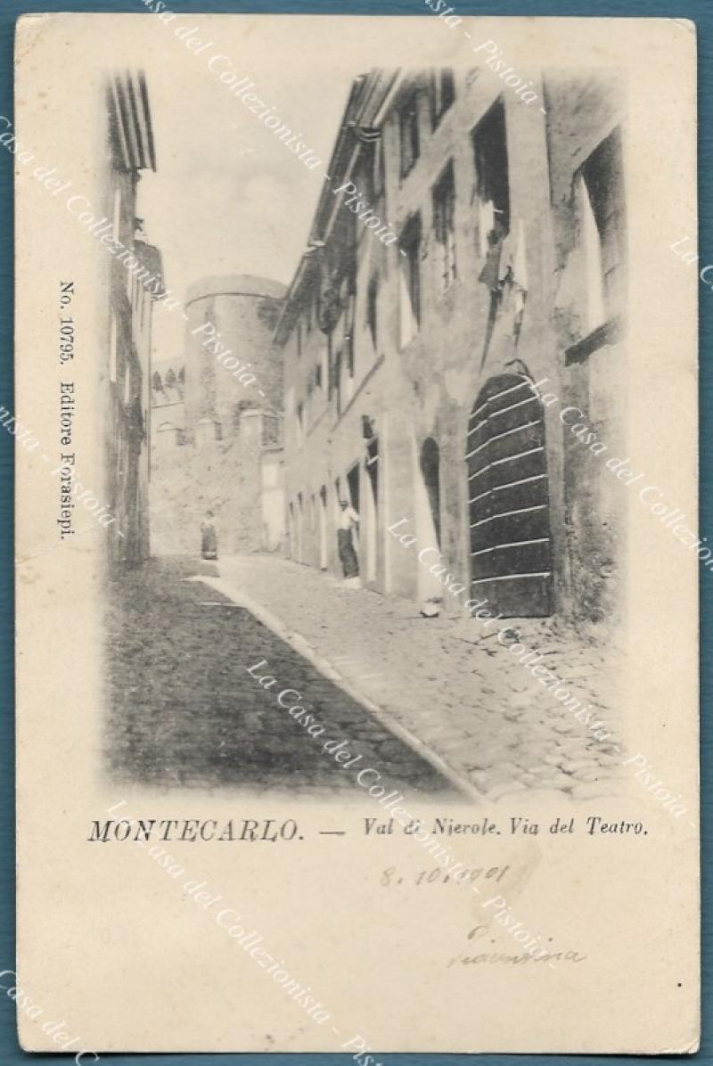 MONTECARLO, Lucca. Via di Nievole. Via del Teatro. Cartolina d'epoca viaggiata nel 1901. Lievi ingiallimenti a retro. (Rif.D7220)