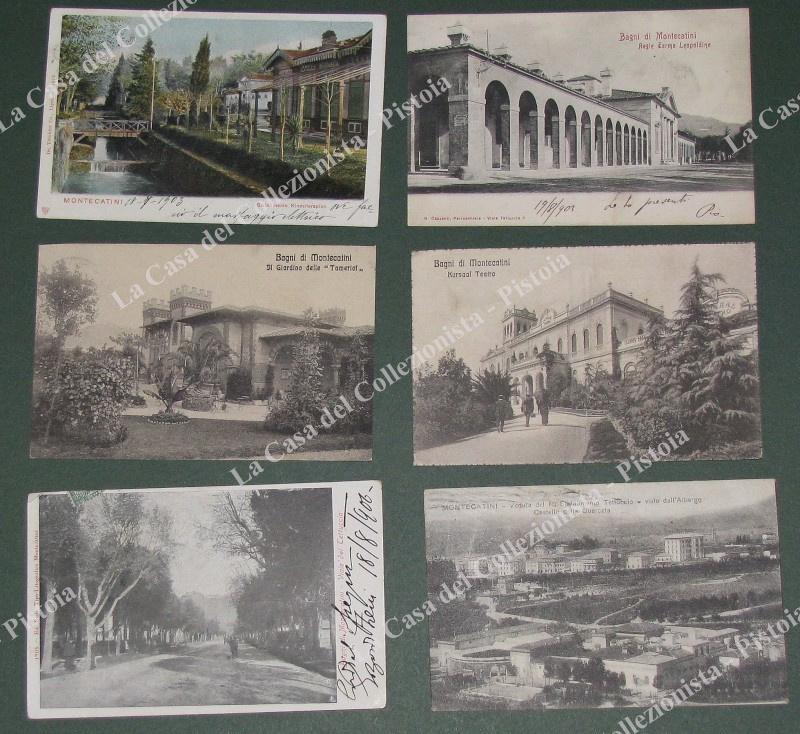 MONTECATINI, Pistoia. 6 cartoline d'epoca viaggiate nel 1902 -1917. Una piegata. (Rif.E1791)