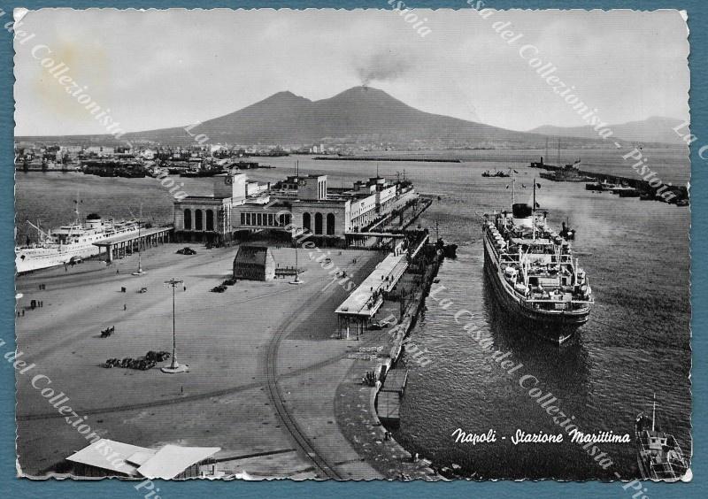 NAPOLI. Stazione Marittima. Cartolina d'epoca formato grande, viaggiata nel 1958. (Rif.F2864)