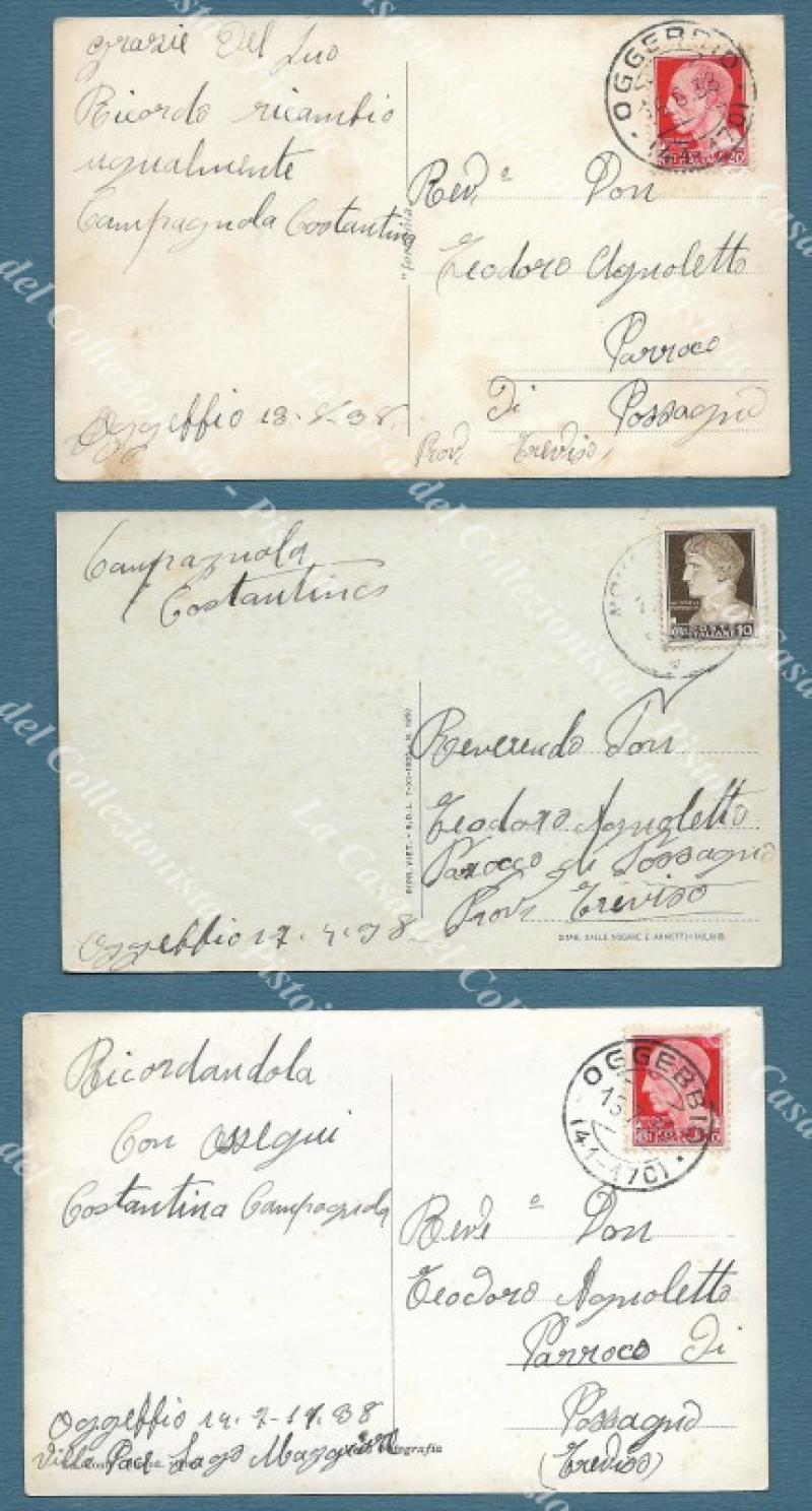 OGGEBBIO, Lago Maggiore. 3 cartoline d'epoca viaggiate nel 1938. (Rif.F2543)