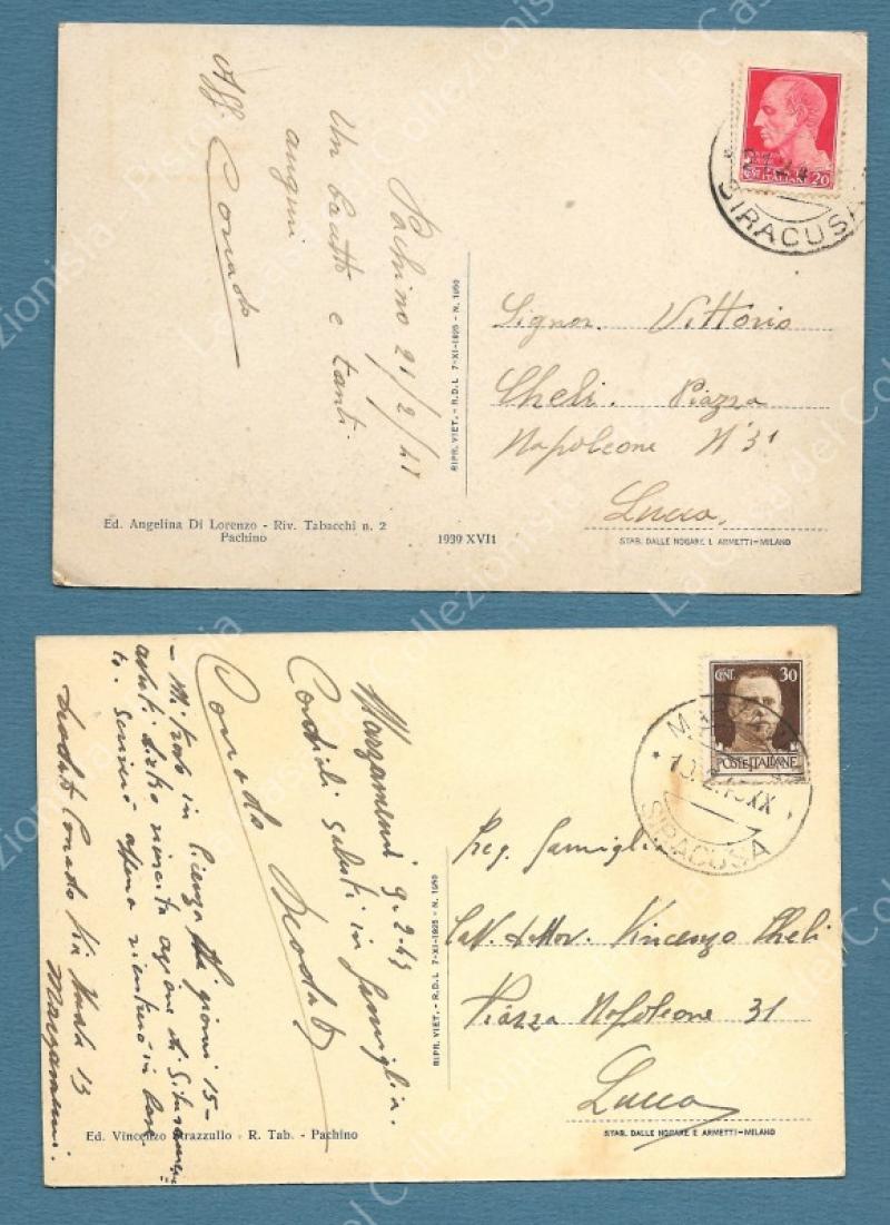 PACHINO, Siracusa. 2 cartoline d'epoca formato grande, viaggiate nel 1941 e 1943. (Rif.F5569)