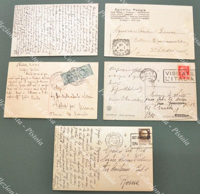 PADOVA città. 5 cartoline d'epoca viaggiate tra il 1904 e il 1933. (Rif.F2653)