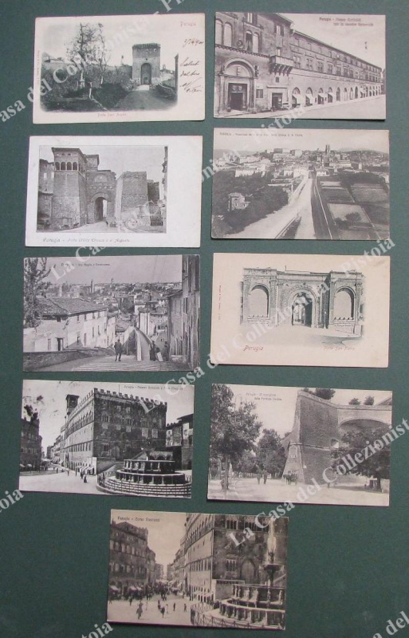 PERUGIA. 9 cartoline d'epoca anteguerra di piccolo formato di cui 4 viaggiate. Un francobollo asportato. (Rif.E2944)
