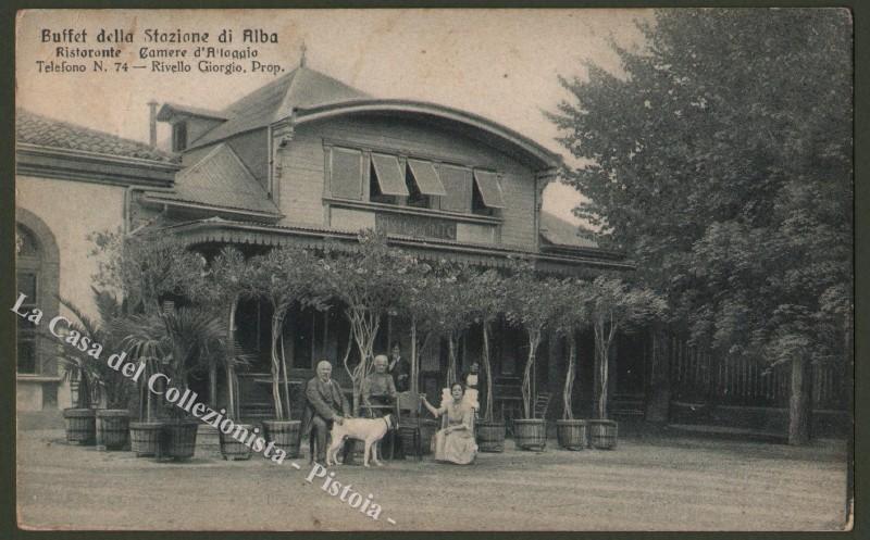 Piemonte. ALBA, Cuneo. Buffet della Stazione di Alba. Cartolina d'epoca viaggiata nel 1921. Francobolli asportati. (Rif.D2457)