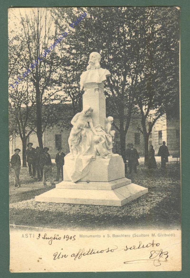 Piemonte. ASTI. Monumento a S. Boschiero. Cartolina d'epoca viaggiata nel 1905. (Rif.D5583)