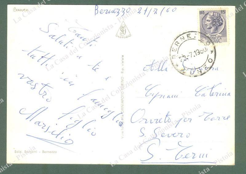 Piemonte. BERNEZZO, Cuneo. Via Umberto e albergo Italia. Cartolina d'epoca viaggiata nel 1960. (Rif.E1353)