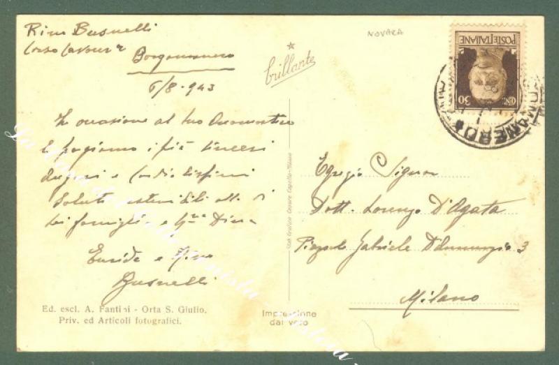 Piemonte. BORGOMANERO, Novara. Corso Sempione. Cartolina d'epoca viaggiata nel 1943. Ottima conservazione. (Rif.D985)