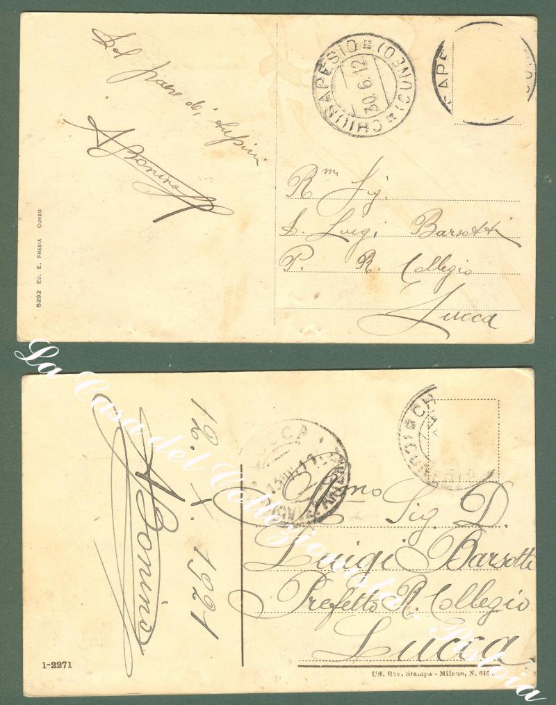 Piemonte. CHIUSA PESIO, Cuneo. Due cartoline d'epoca viaggiate nel 1912 e nel 1921. Francobolli asportati. (Rif.D2098)