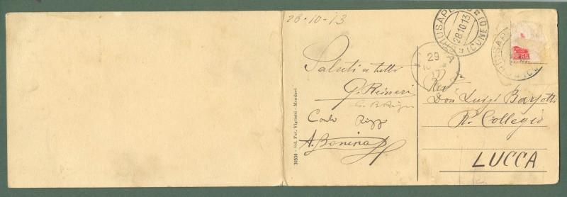 Piemonte. CHIUSA PESIO, Cuneo. Panorama. Cartolina d'epoca doppia viaggiata nel 1913. Francobollo asportato. (Rif.D2149)