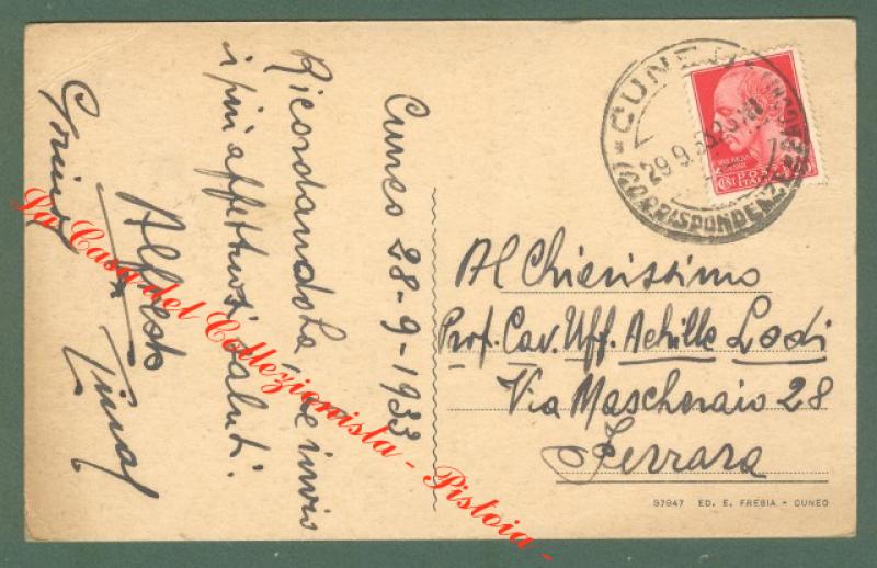 Piemonte. CUNEO. Giardino pubblico. Cartolina d'epoca viaggiata nel 1932. Ottima conservazione. (Rif.D541)