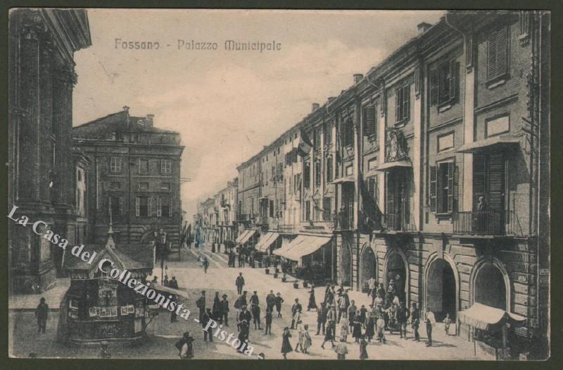 Piemonte. FOSSANO, Cuneo. Palazzo Municipale. Cartolina d'epoca viaggiata nel 1915. Ottima conservazione. (Rif.D2266)
