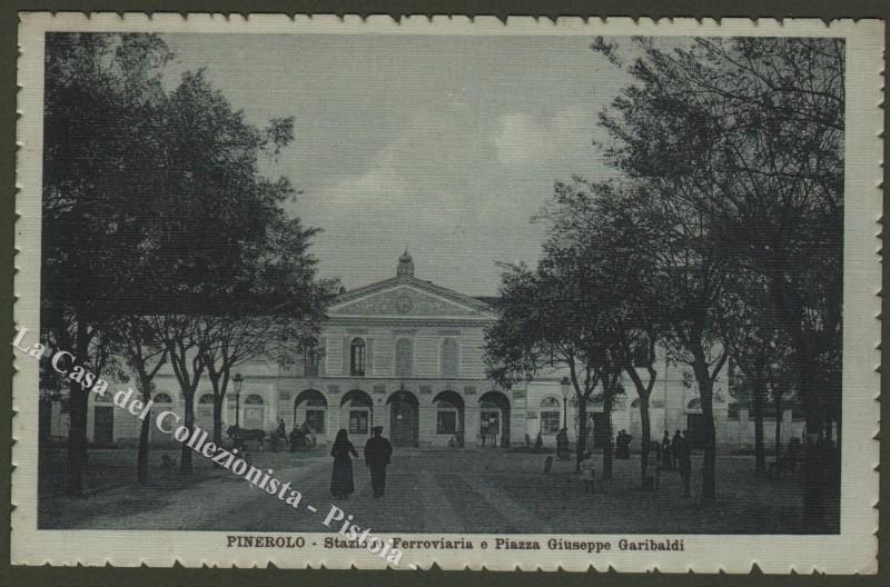 Piemonte. PINEROLO, Torino. Stazione Ferroviaria e Piazza Giuseppe Garibaldi.