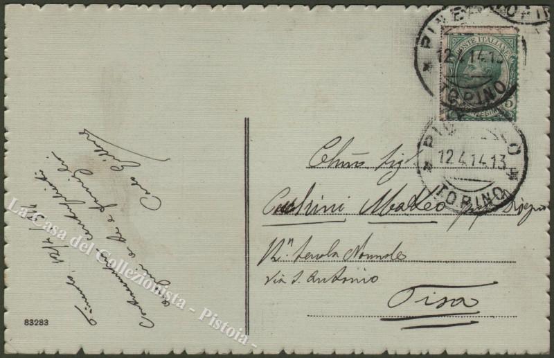 Piemonte. PINEROLO, Torino. Stazione Ferroviaria e Piazza Giuseppe Garibaldi. Cartolina d'epoca viaggiata nel 1914. Buona conservazione. (Rif.D2231)