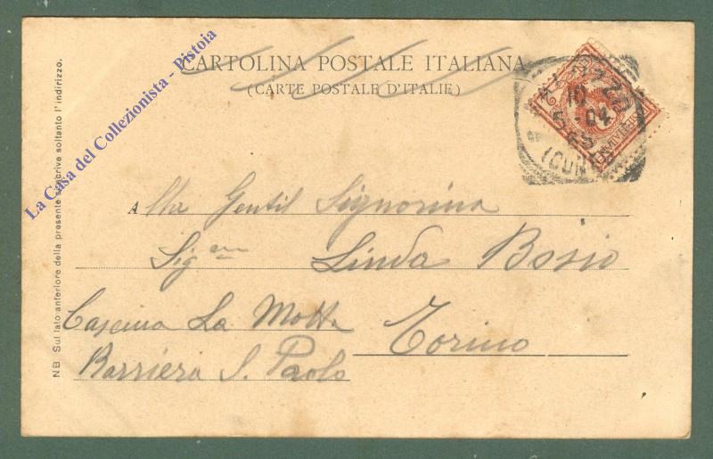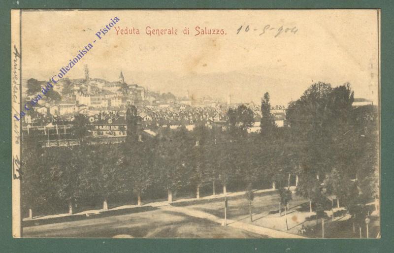Piemonte. SALUZZO, Cuneo. Panorama. Cartolina d'epoca viaggiata nel 1904. (Rif.D5665)