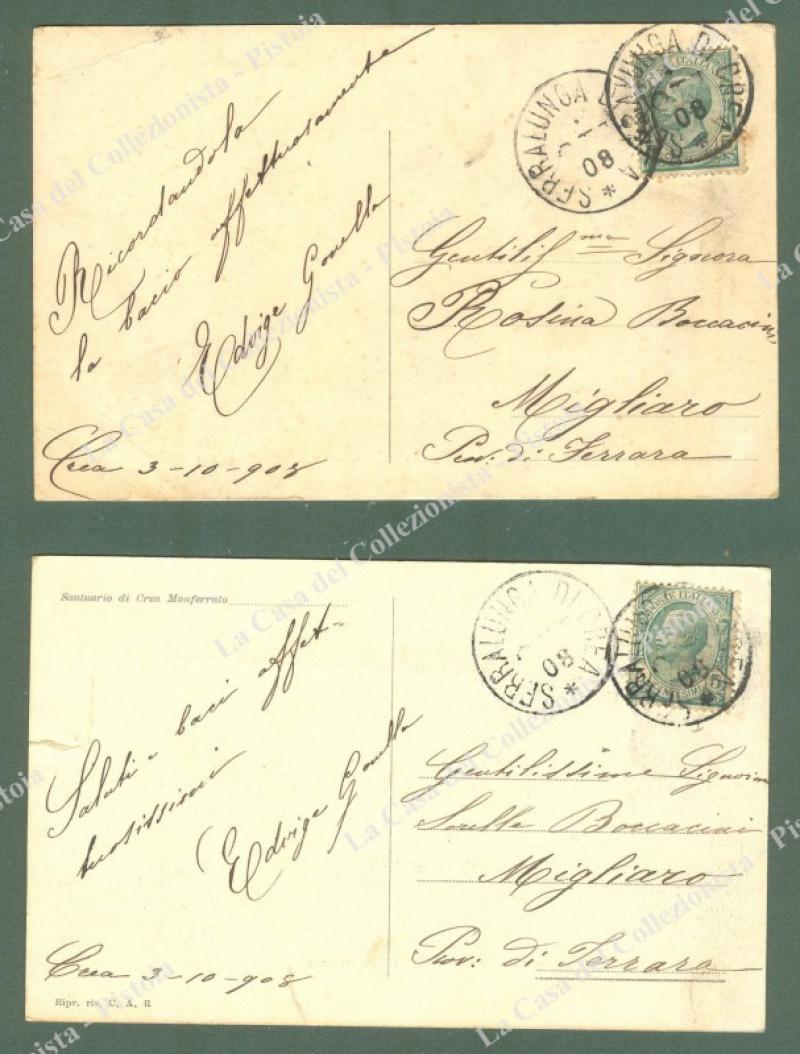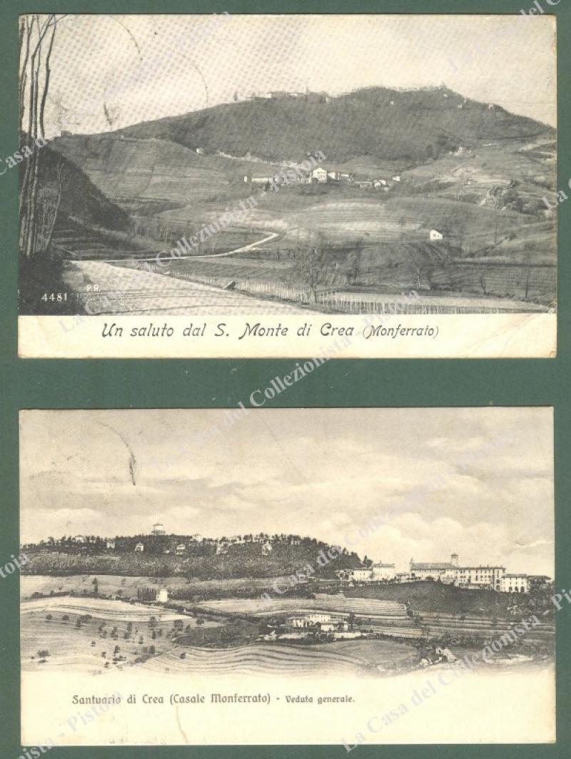 Piemonte. SANTUARIO DI CREA, Alessandria. 2 cartoline d'epoca viaggiate nel 1908. Ottima conservazione. (Rif.E0505)