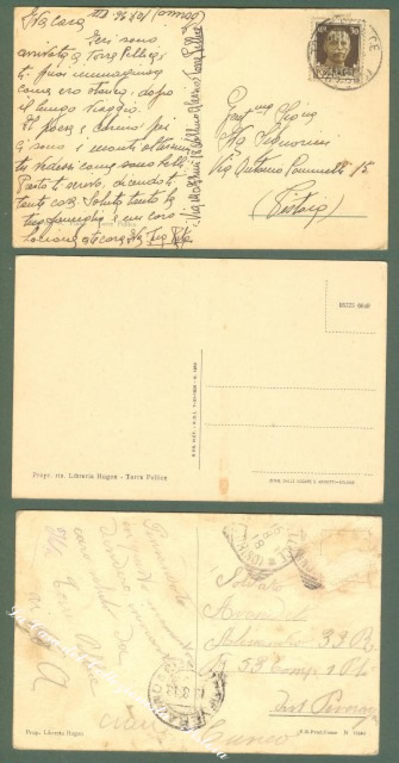 Piemonte. TORRE PELLICE, Torino. Tre cartoline d'epoca (2 viaggiate nel 1918 e 1936). Una con francobollo asportato. (Rif.D1269)