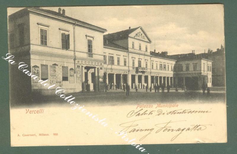 Piemonte. VERCELLI. Palazzo Municipale. Cartolina d'epoca viaggiata nel 1900. Ottima conservazione. (Rif.D957)