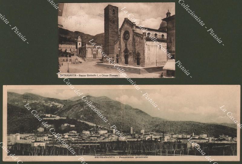 PIETRASANTA, Lucca. 2 cartoline di cui una doppia. Una viaggiata nel 1915. Ottima conservazione. (Rif.D7579)