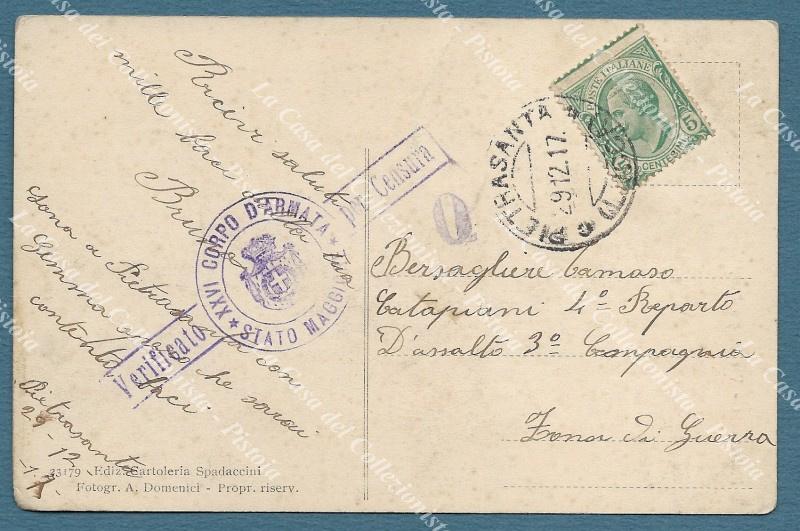 PIETRASANTA, Lucca. Via stagi. Cartolina d'epoca viaggiata nel 1917. Un angolino arrotondato. (Rif.F2272)