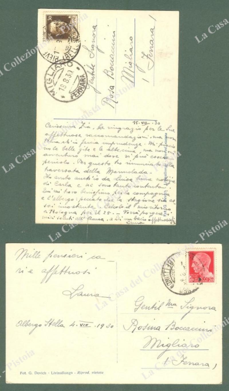 PIEVE DI LIVINALLONGO, Belluno. 2 cartoline d'epoca viaggiate nel 1930