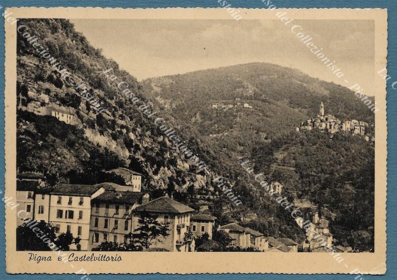 PIGNA e CASTELVITTORIO, Imperia. Cartolina d'epoca formato grande, viaggiata nel 1940. (Rif.F3755)