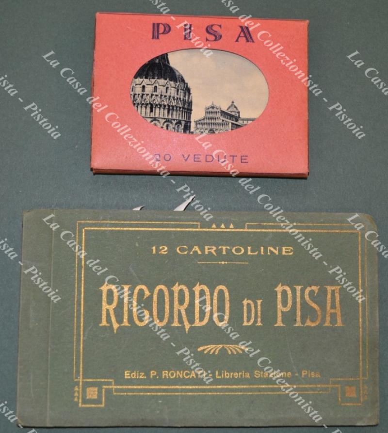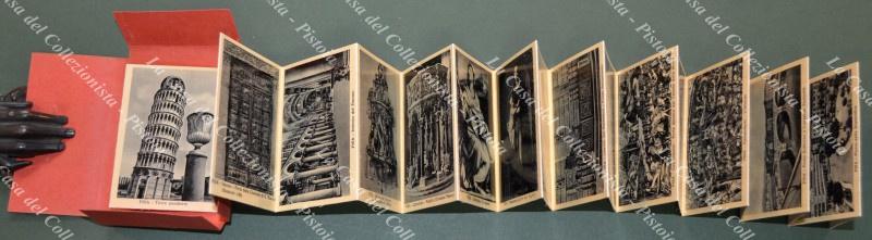 PISA. Insieme composto da: 1) Un libretto, ediz. Roncati-Libreria Stazione, contenente 12 cartoline. Circa 1920. 2) 20 vedute fotografiche unite a fisarmonica contenute in custodia. Anni 1950. Ottima conservazione. (Rif.F2550)