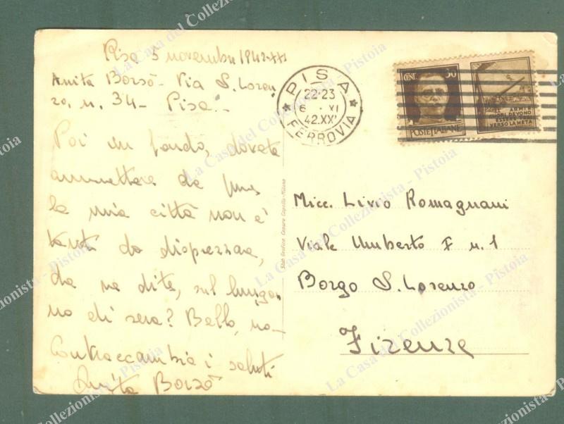 PISA, Lungarno, vista notturna. Cartolina d'epoca viaggiata nel 1942