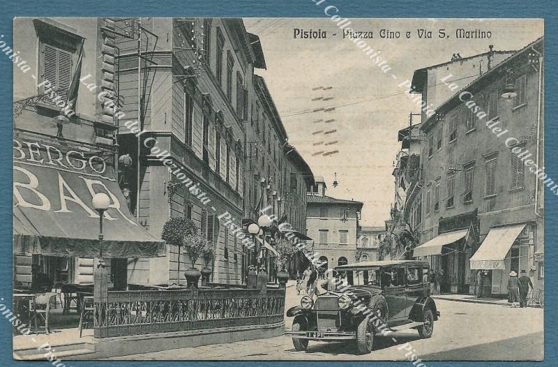 Pistoia. Piazza Cino e Via S. Martino (autovettura in sosta). Viaggiata nel 1938.