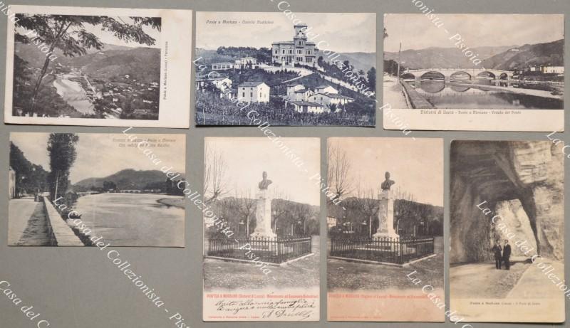 PONTE A MORIANO, Lucca. 7 cartoline (5 viaggiate 1903-1906, due con francobollo asportato). Una ripetizione. (Rif.D7656)