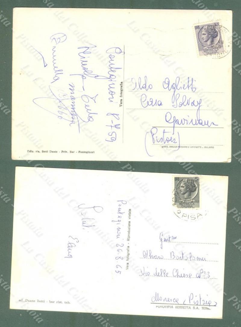PONTE GINORI, Pisa. 2 cartoline d'epoca viaggiate nel 1959 e 1965. Formato grande. (Rif.E5563)