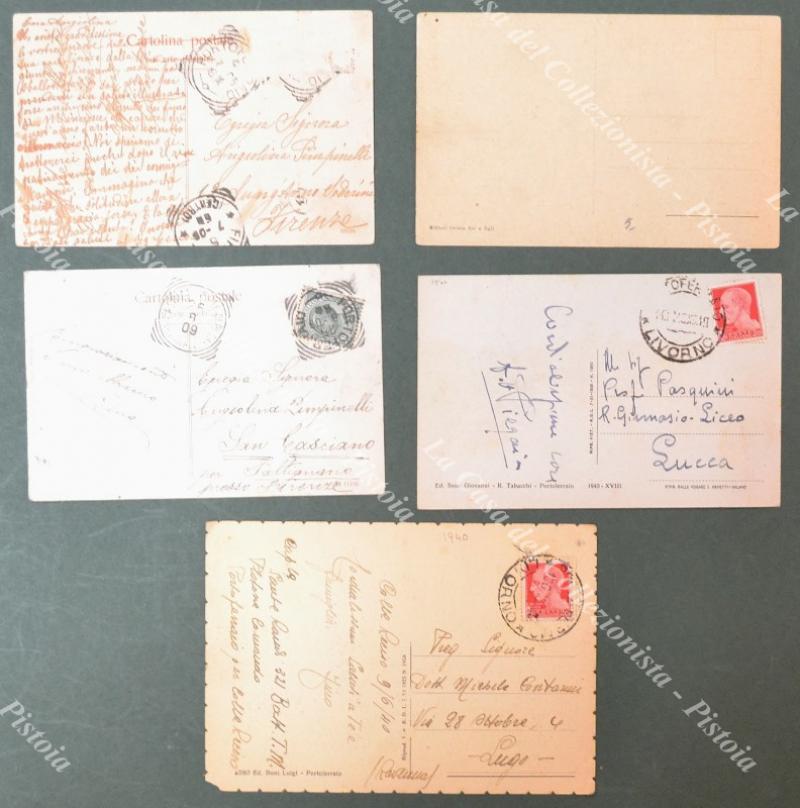 PORTOFERRAIO, Elba. 5 cartoline d'epoca (4 viaggiate tra il 1906 e il 1940). Un francobollo asportato. (Rif.F2690)
