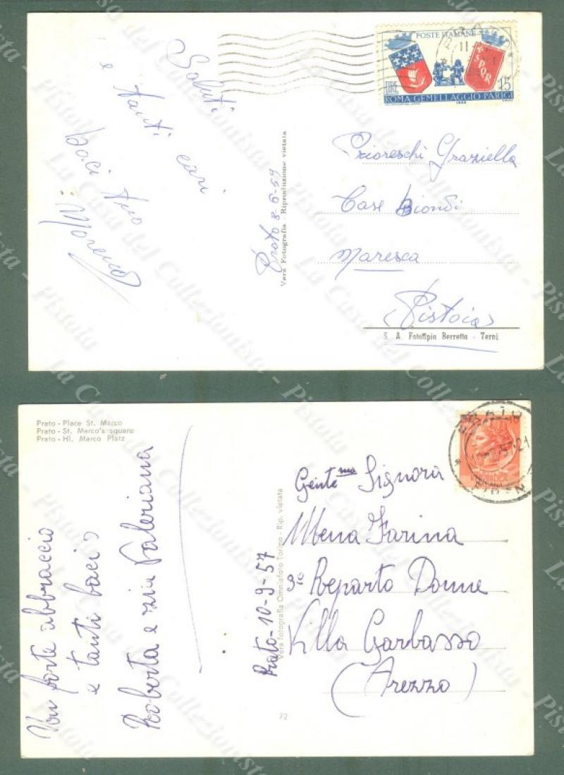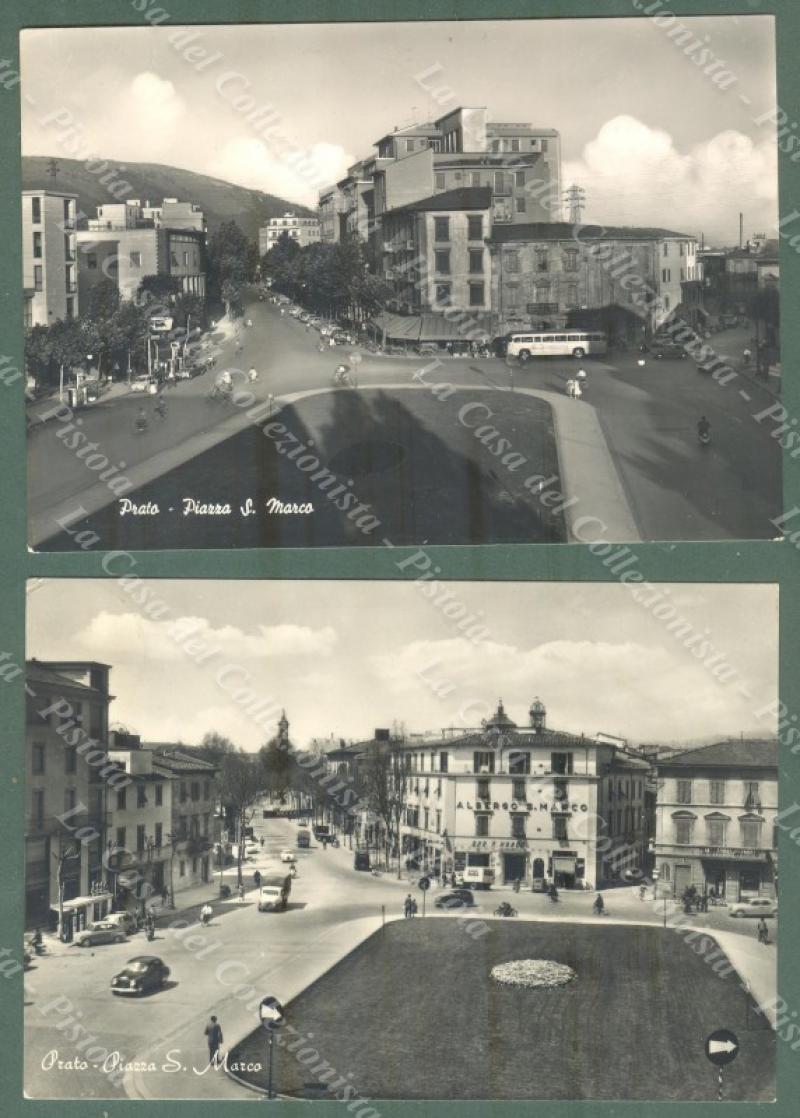 PRATO. Piazza S. Marco. 2 diverse cartoline d'epoca viaggiate nel 1957e 1959