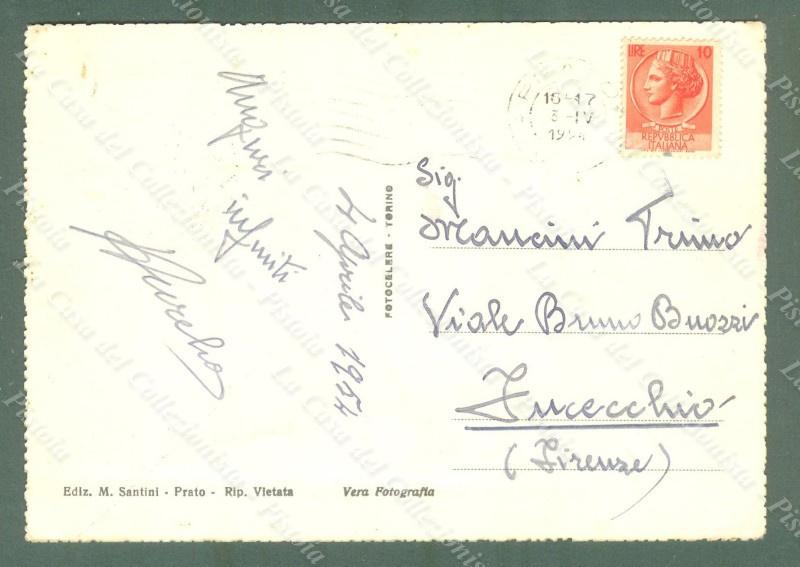 PRATO. Stazione ferroviaria. Cartolina d'epoca formato grande viaggiata 1954.