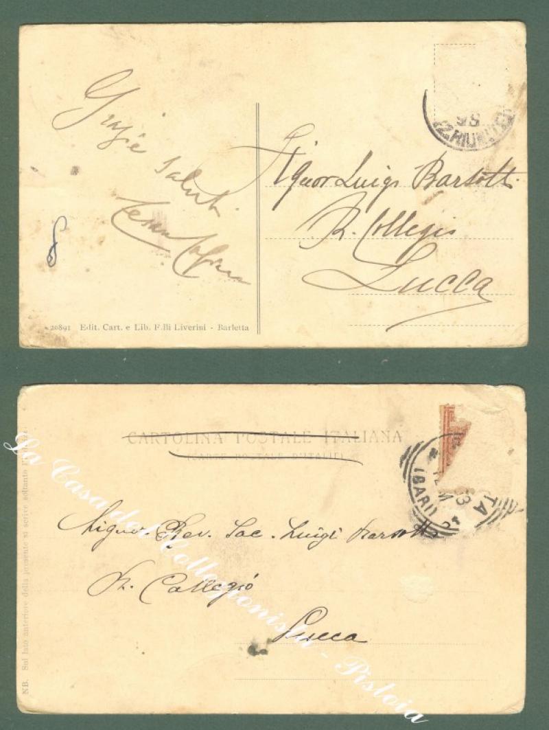 Puglia. BARLETTA, Bari. Due cartoline d'epoca viaggiate. qualche difetto. (Rif.D2218)
