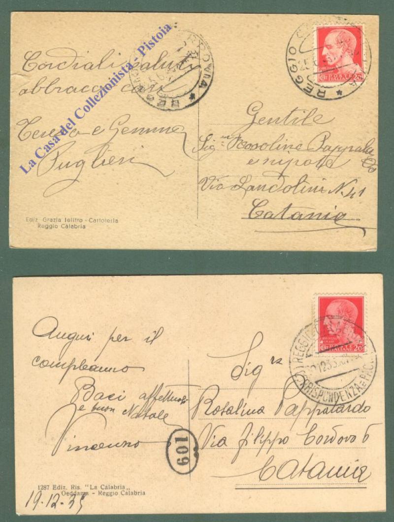 REGGIO CALABRIA. 2 cartoline d'epoca viaggiate nel 1935. (Rif.D5544)