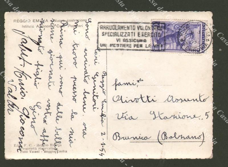 REGGIO EMILIA. Istituto Autonomo Case Popolari. Cartolina d'epoca formato grande, viaggiata nel 1954. (Rif.F1465)