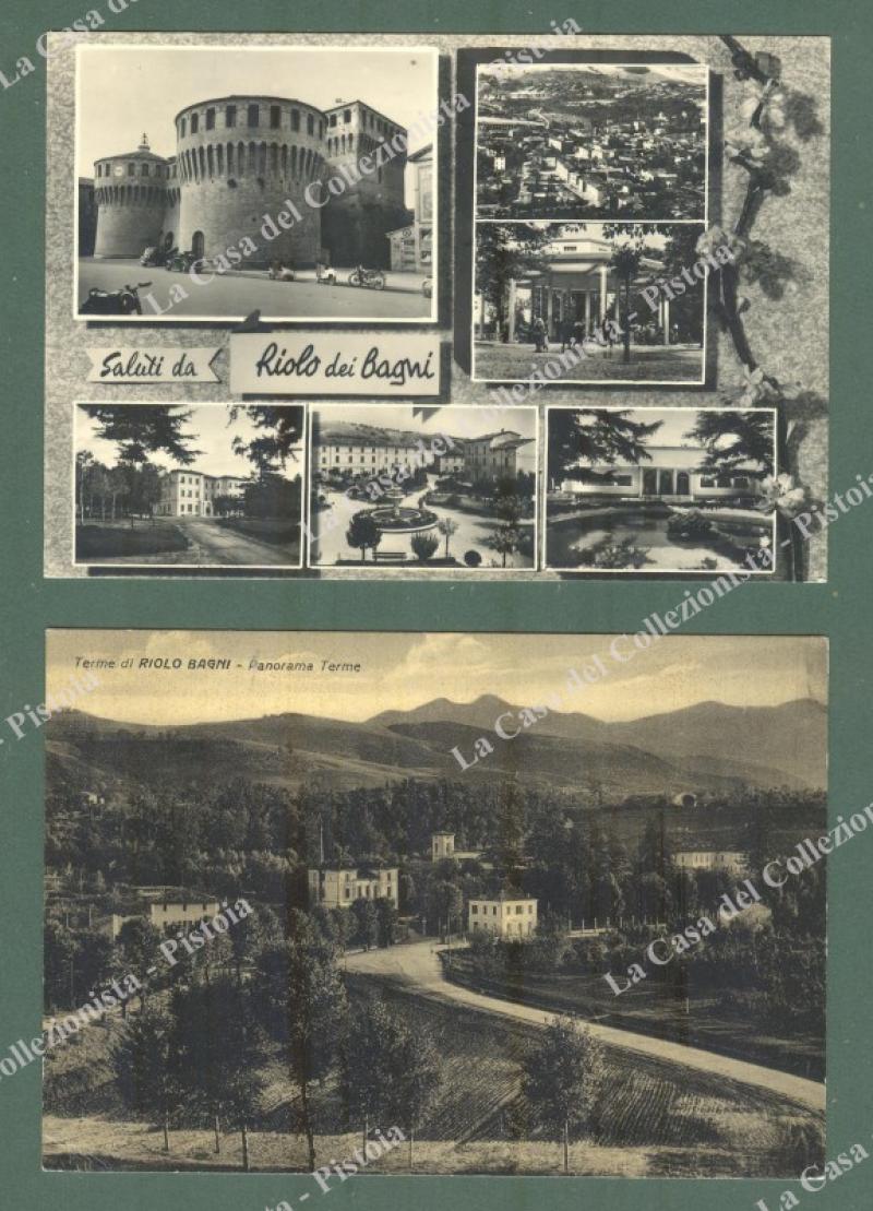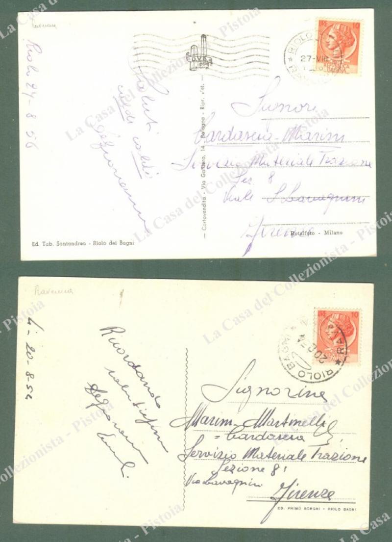 RIOLO BAGNI, Ravenna. 2 cartoline d'epoca formato grande, viaggiate nel 1954 e 1956. (Rif.E4056)