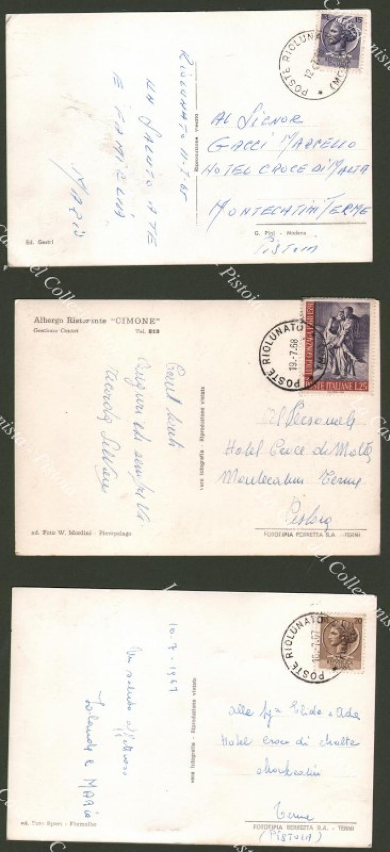 RIOLUNATO, Modena. 3 cartoline viaggiate tra il 1967 e il 1968.