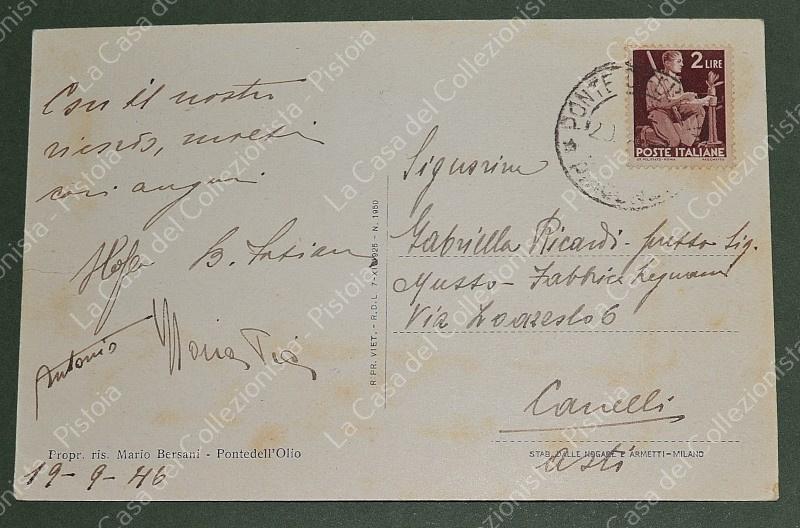 RIVA DI PONTE DELL'OLIO, Piacenza. Cartolina d'epoca formato piccolo viaggiata nel 1946. (Rif.F7021)