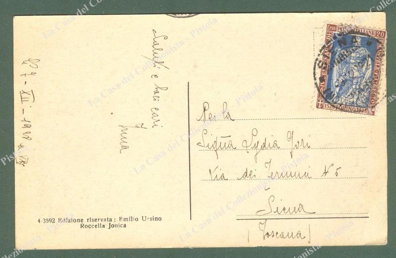 ROCCELLA JONICA, Reggio Calabria. Cartolina d'epoca viaggiata nel 1928. Ottima conservazione. (Rif.E0090)