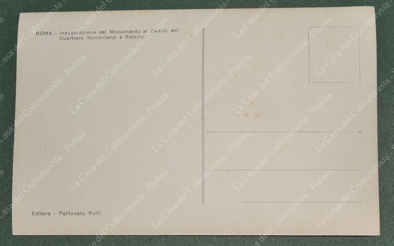 ROMA. Inaugurazione monumendto ai caduti, quartiere Nomentano e Salario. Cartolina d'epoca formato piccolo, non viaggiata, anni 1920. (Rif.F6893)