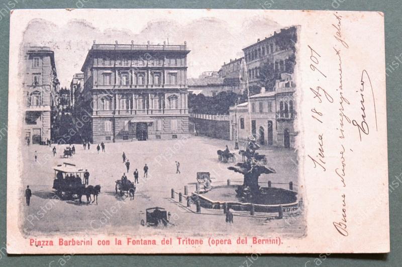 ROMA. Piazza Barberini. Cartolina d'epoca formato piccolo, viaggiata nel 1901.