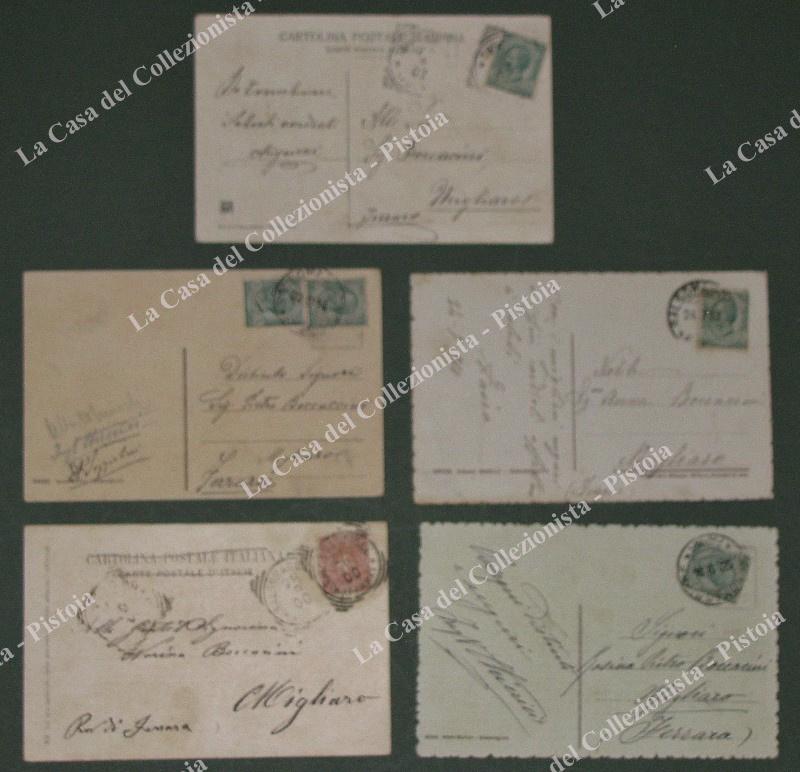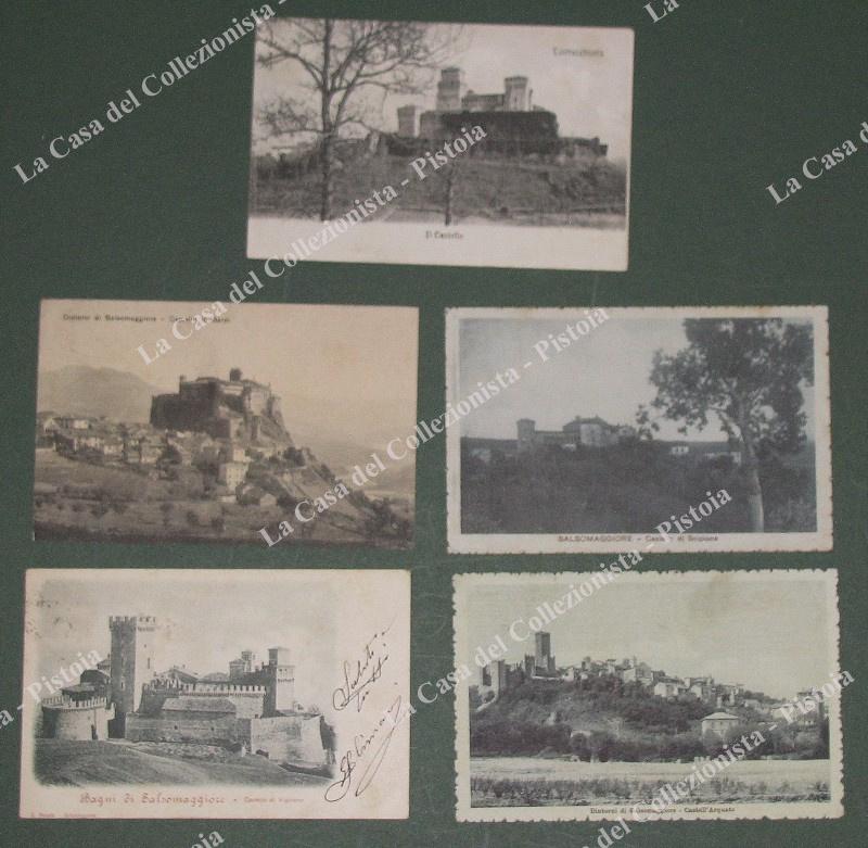 SALSOMAGGIORE dintorni, Parma. 5 cartoline d'epoca viaggiate 1900 - 1918: Castell'Arquato, Castello di Vigoleno, Castello di Scipione, Castello di Bardi, Torrechiara. Ottima conservazione. (Rif.E0296)