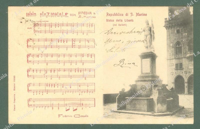 SAN MARINO. Inno Nazionale. Cartolina d'epoca viaggiata nel 1903 circa.