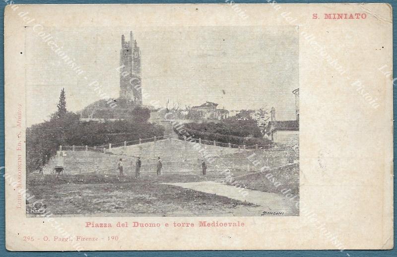 SAN MINIATO, Pisa. Piazza Duomo e Torre. Cartolina d'epoca primi 1900