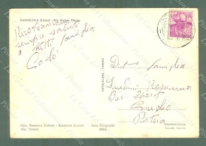 SANNICOLA, Lecce. Via Regina Elena. Cartolina d'epoca viaggiata anni '60