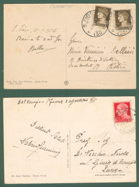 SANTA FIORA, Grosseto. Due cartoline d'epoca viaggiate nel 1932 e nel 1936. Ottima conservazione. (Rif.C5453)