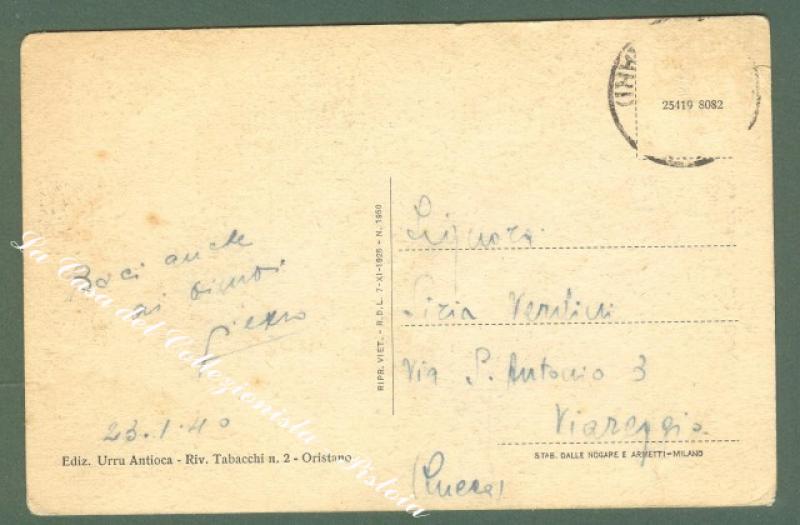 Sardegna. ORISTANO. Arco Torre S. Cristoforo. Cartolina d'epoca viaggiata nel 1940. Francobollo caduto. (Rif.D1236)