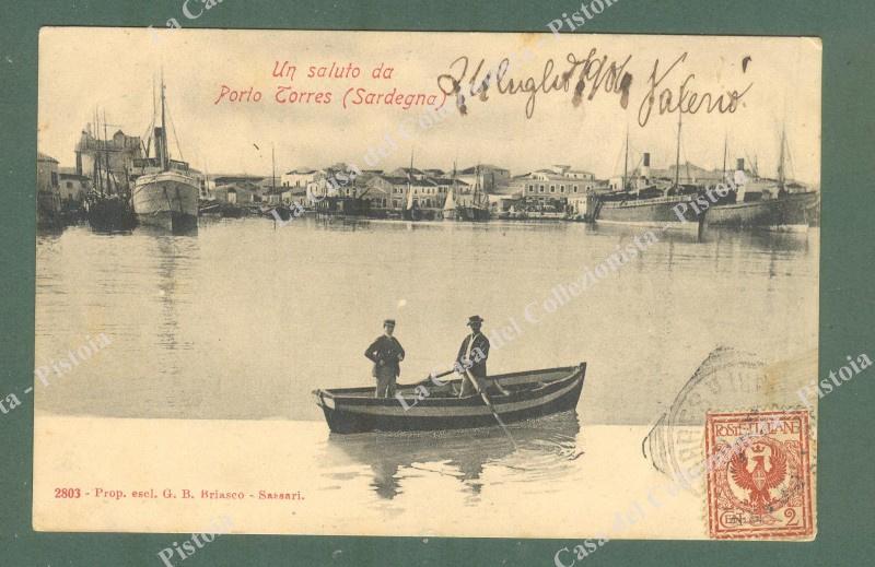 Sardegna. PORTO TORRES, Sassari. Un saluto da. Cartolina d'epoca viaggiata nel 1904. (Rif.E3033)